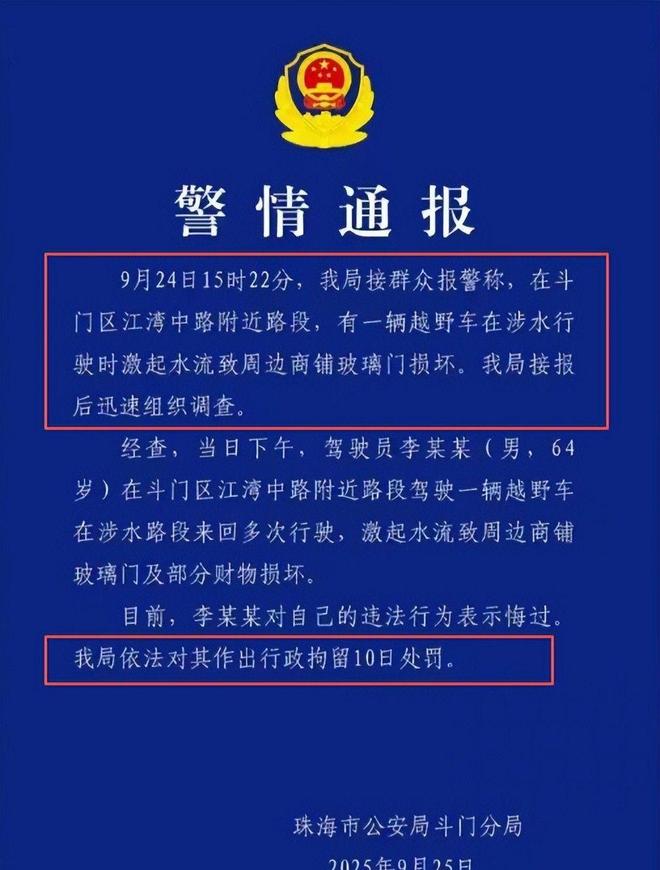 事发后,珠海“造浪司机”底裤被扒,仍是个大角色,不过全网社死的一幕发生后,他吓得连夜将账号刊出,警方第一时间介入后,皆大欢喜的处分来了。